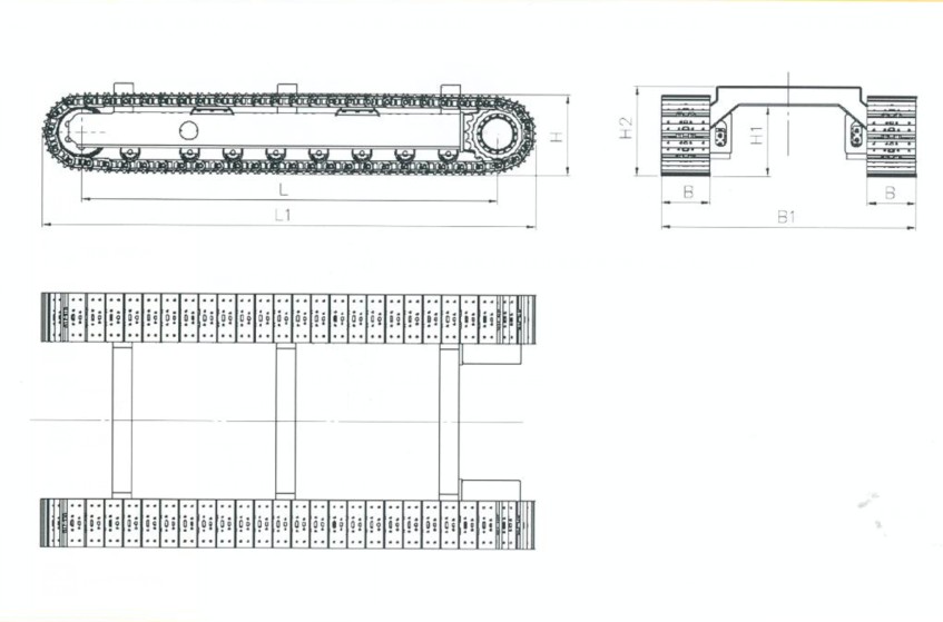 備:1、連接式擺動(dòng)橫梁履帶底盤,支重輪為滾動(dòng)軸承結(jié)構(gòu);